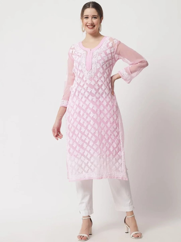 The most popular types of chikankari kurtis include: